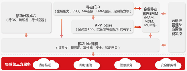 iFBP移动平台覆盖了移动开发、集成、部署实施和运维管理等各个阶段,通过平台化技术降低移动应用开发难度,并提供全面安全机制和IT管理,帮助企业快速完成移动开发,加快后台系统集成,结合云计算、大数据、社交等实现移动价值最大化。