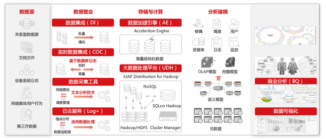 iFBP数据平台帮助企业完成自有数据和互联网数据的采集、汇聚、清洗和存储,并进行金融应用的建模分析、分布式计算,并输出可视化展现,帮助企业在海量数据中进行挖掘分析,做出有价值的运营决策。