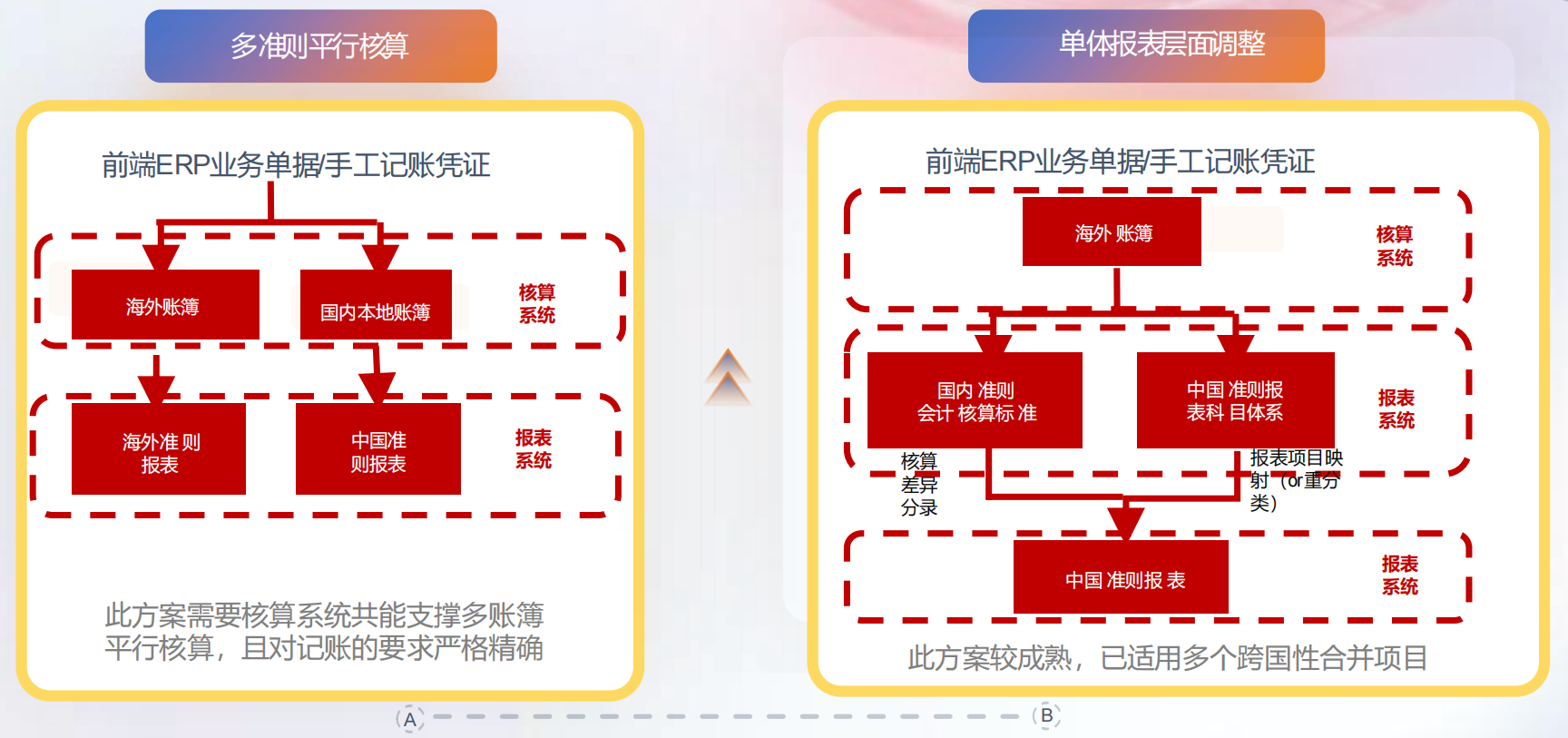 3、多准则并行要求:需同时遵循 IFRS、USGAAP 等国际准则及当地会计准则,部分国家准则未与国际趋同,报表编制难度升级;