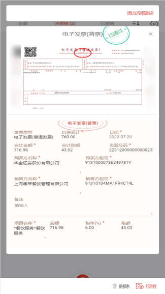 员工仅需简单核对后即可报销