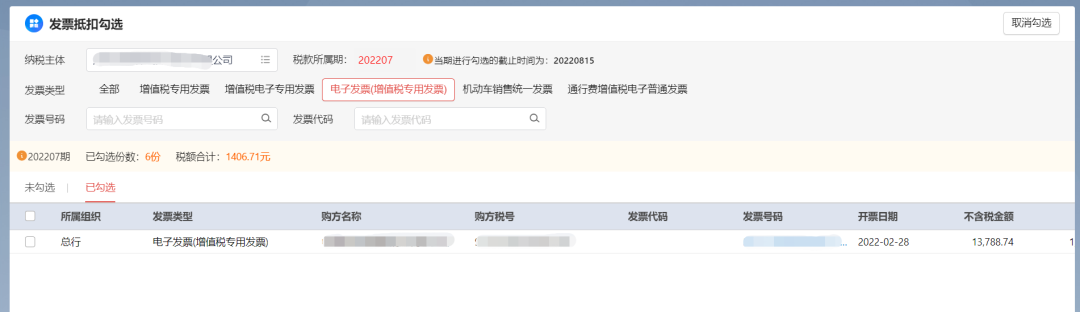 支持全电发票抵扣勾选