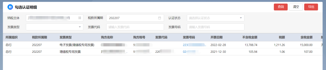 对已勾选的发票进行统计确认