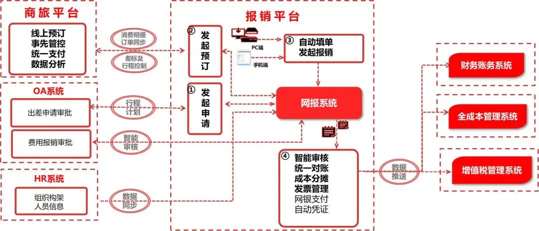 首先,通过移动报销及商旅平台实现差旅业务一体化