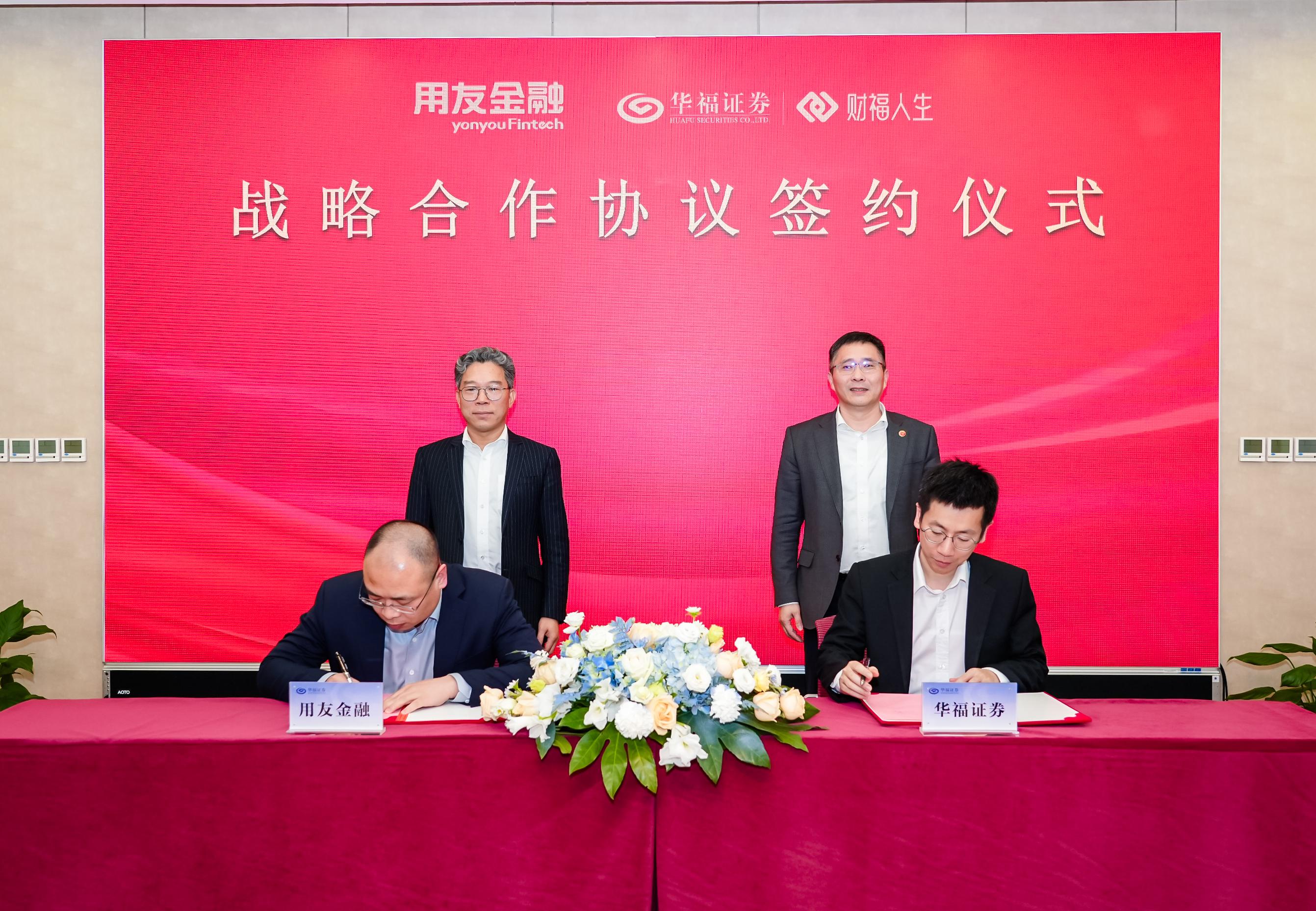 华福证券党委副书记、总裁黄德良与用友金融董事、总裁郑海伟座谈交流并共同见证签约。华福证券首席财务官谢融、用友金融副总裁冯涛代表双方签署了战略合作协议。华福证券、用友金融相关部门主要负责人出席会议。