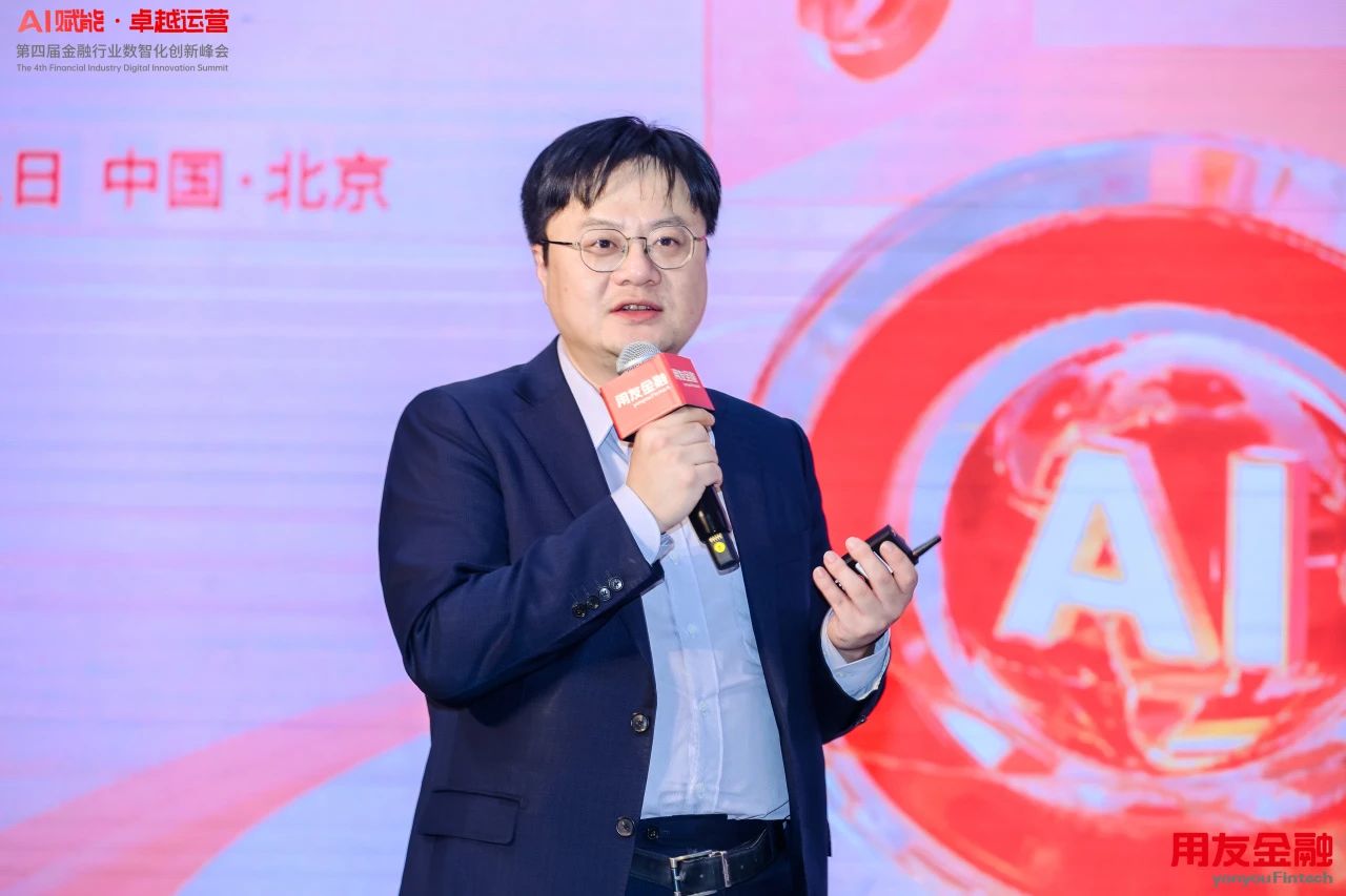 用友金融董事兼总裁郑海伟在致辞中深刻阐述了AI大模型技术对银行业数字化转型的战略意义。他指出,在"五篇大文章"等政策指引下,银行业正面临服务实体经济、防控金融风险与推动创新发展的三重使命。AI技术作为核心驱动力,正在重构银行业的服务模式、风控体系和运营机制。