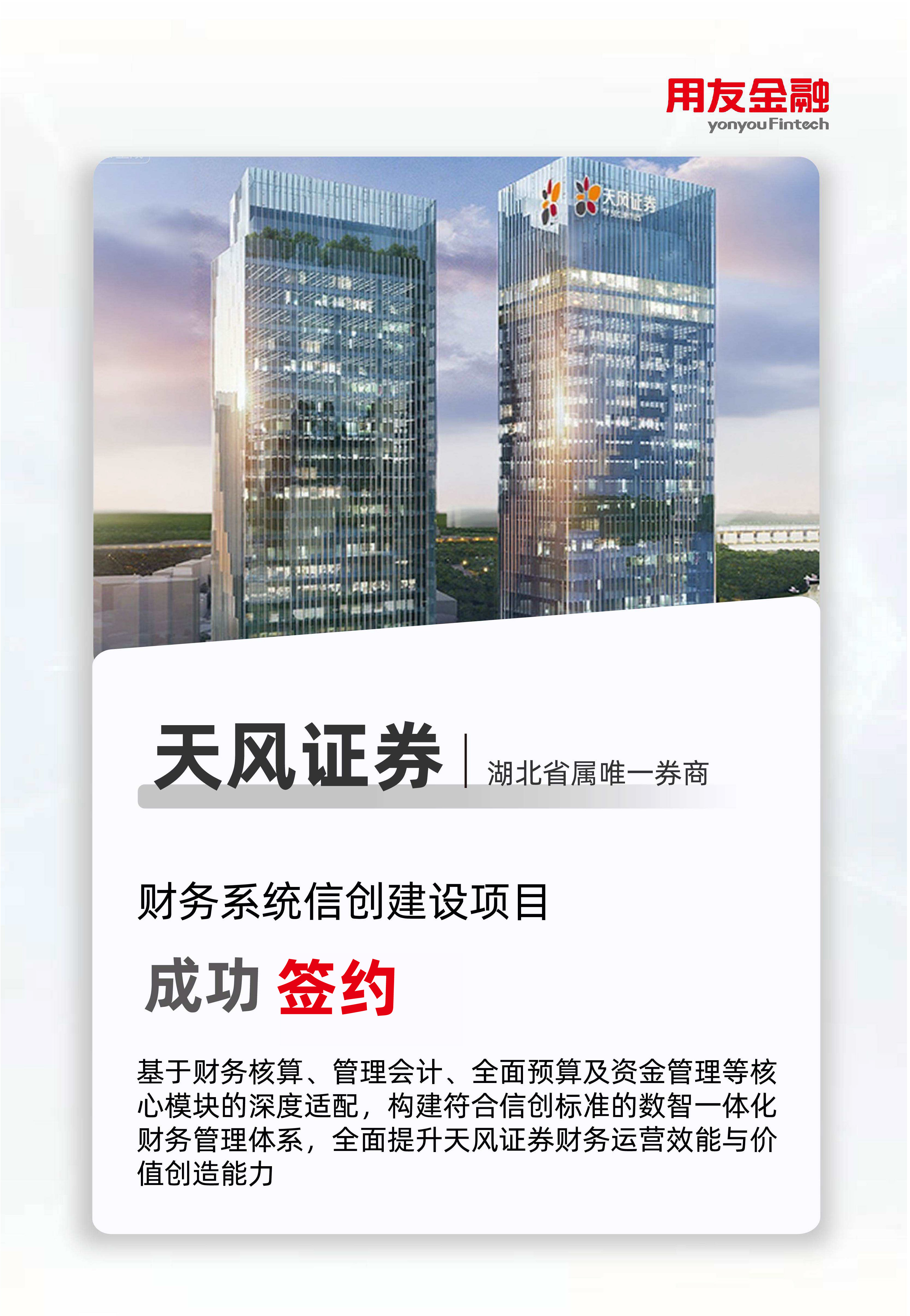 本次财务系统的建设将全面提升天风证券财务工作的信息化水平,为公司的战略决策提供更有力的财务数据支撑,助力天风证券在新征程中实现高质量发展。