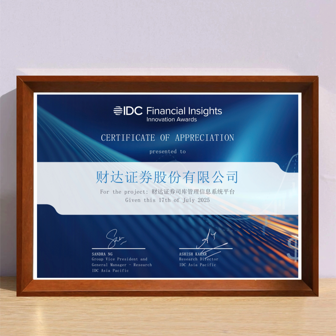 在证券行业加速推进财务管理数智化转型的背景下,构建安全、高效、智能的司库管理体系,已成为券商提升核心竞争力、防范金融风险的关键举措。财达证券股份有限公司(以下简称“财达证券”)前瞻布局,携手用友金融历经数年精心打造“司库管理信息系统平台”,致力于实现资金的全流程精益管控与业财深度融合。该项目经过多年实践检验,成效显著,于近日获颁“2025 IDC金融洞察创新奖”。
