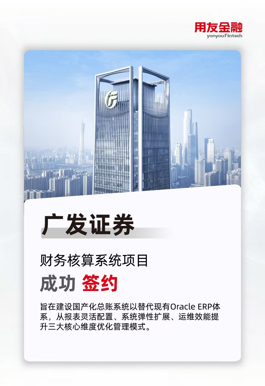 为响应国家信息技术应用创新战略,全面提升财务管理的精细化、智能化与自主可控水平,广发证券股份有限公司(以下简称“广发证券”)正式携手用友金融启动“财务核算系统项目”。该项目旨在构建一套全栈国产化的新一代总账系统,全面替代现有Oracle ERP中的核心核算模块,标志着广发证券在财务核心系统信创转型道路上迈出关键一步。