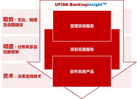 用友经营分析是整体框架下的一系列专业服务,包括管理咨询服务、项目实施服务、软件系统产品,帮助商业银行通过经营分析活动获得“洞察力”,着重获取商业银行实施经营分析战略的三大核心价值。
