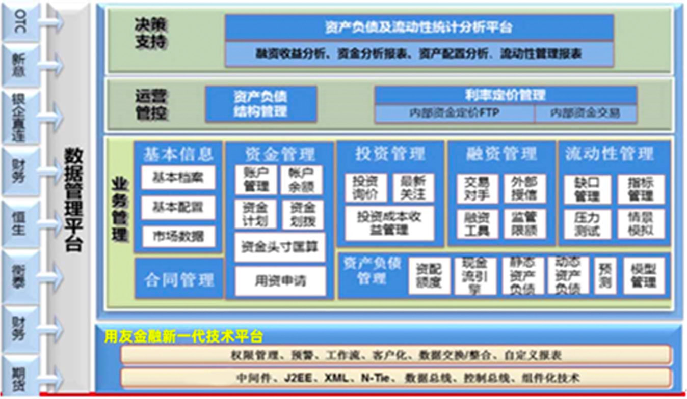 用友金融证券业资产负债管理系统在设计和研发过程中充分考虑系统的灵活性和可扩展性,应对资产负债及流动性风险解决方案。通过本次建设建成资产负债管理体系、全面并满足监管要求的流动性管理体系、自有资金管理体系、内部资金转移定价管理体系以及全面的数据平台,成为广发证券进行资产负债管理活动所必须的决策支持系统。